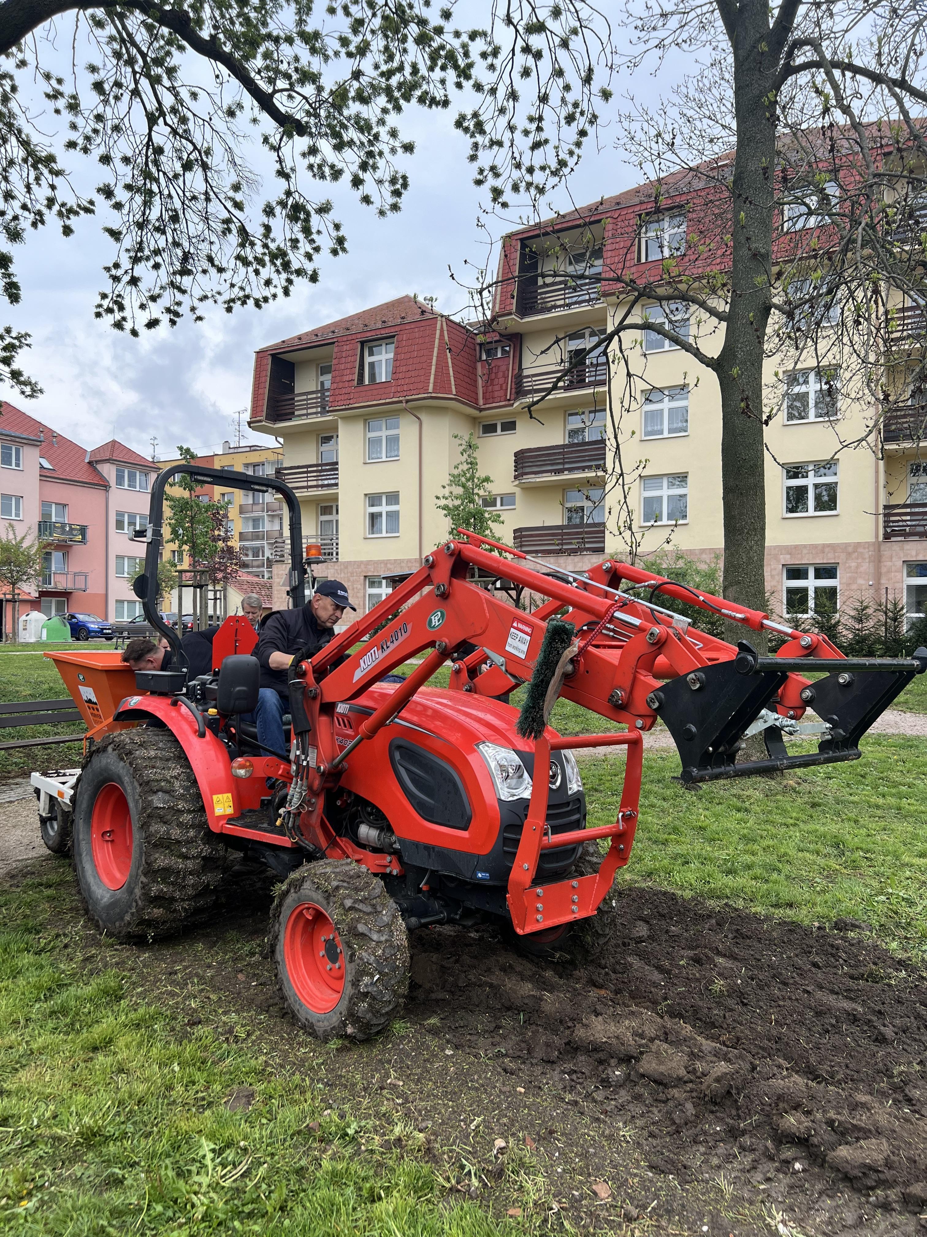 Specializovaný sázecí stroj ukládá cibulky přímo pod travní drn, a to například v parcích, na silničních krajnicích, kruhových objezdech nebo svazích. Můžete si vybrat šířku výsadby - sázíme strojem o šířce 50 cm a jeho násobcích (1m, 1,5m atd..) podle konkrétních potřeb zákazníka.
